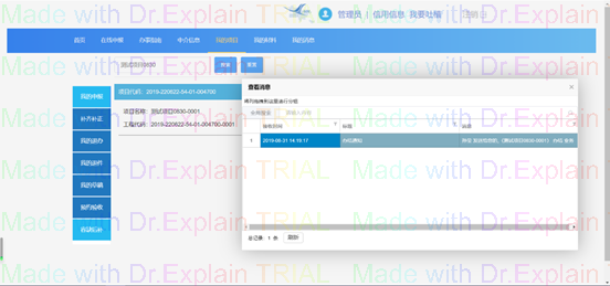 点击图25中的“查看消息”按钮,弹出图26所示界面,可以查看其他用户发送过来的业务办理消息。